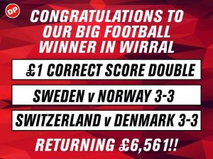 Big Football Winner 27 March 2019 No Comments Congratulations to our lucky customer on the Wirral who managed to win over £6500 for just £1!!